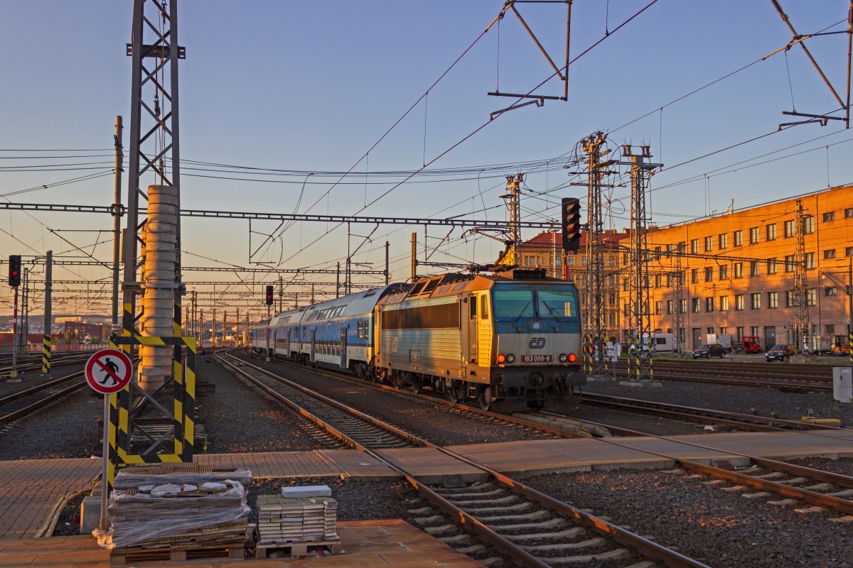 Vor einer der Werkstatthallen im õD Cargo-Betriebswerk Ostrava stehen 363 016 und 130 023 abgestellt.