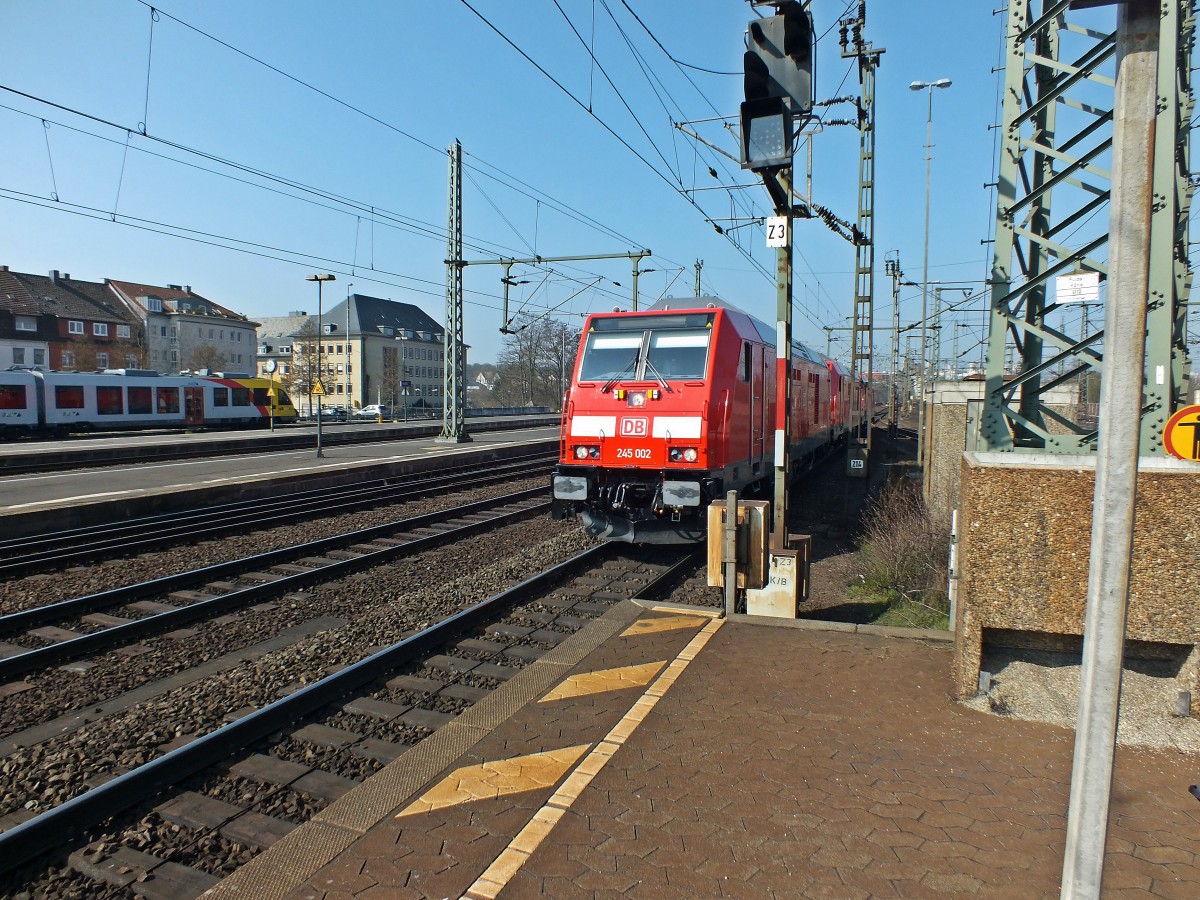Das Highlight des Tages traf mich etwas unvorbereitet: 245 002, eine unbekannte 245 in der Mitte und 245 006 fahren am 14.3.14 durch den Bahnhof Fulda.
